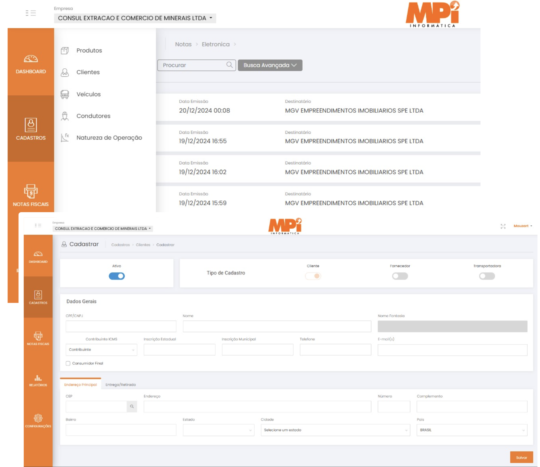 Cadastre produtos, clientes, serviços (NFS-e), condutores (CT-e) e veículos (CT-e)